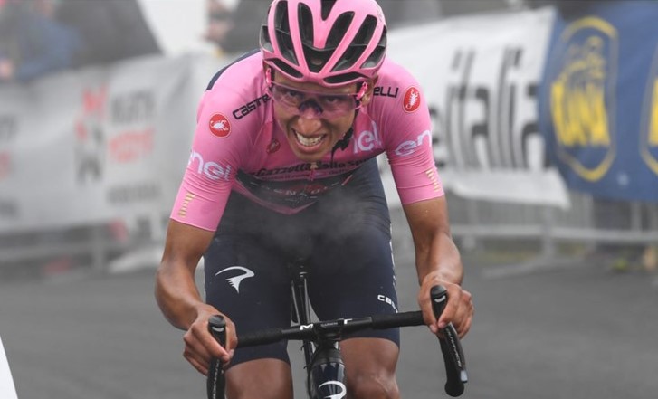 Monte Zocolan, 22 de mayo _ RAM_ Egan Bernal sigue líder en la general, conserva la maglia rosa y consiguió más diferencia sobre sus rivales en la etapa 14 del Giro de Italia del 2021.