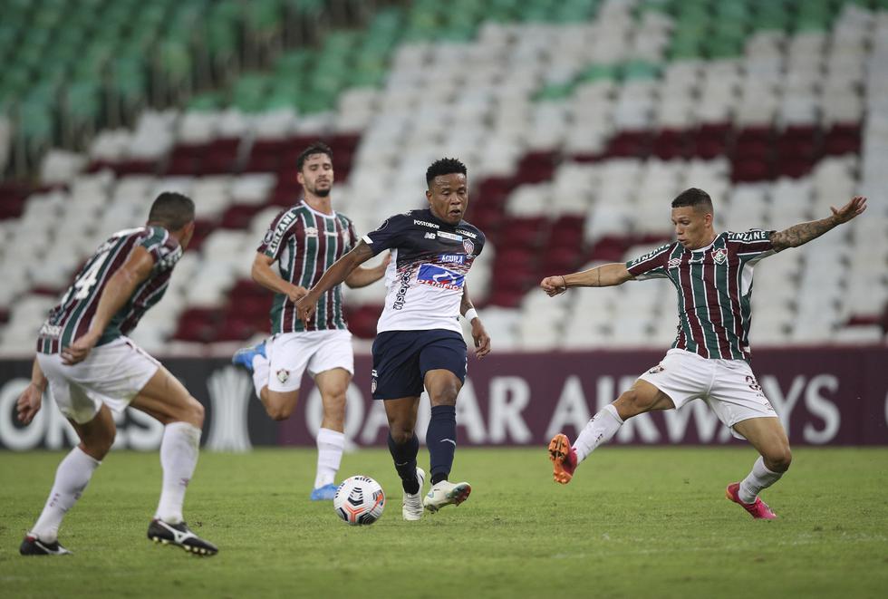 El partido comenzó con los dos equipos lanzados al ataque y la primera oportunidad clara de gol la tuvo el Fluminense a los dos minutos, cuando Kayky recibió un balón del ecuatoriano Juan Cazares y por poco venció al portero Sebastián Viera.
