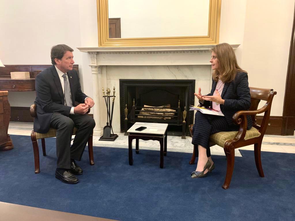 En horas de la tarde, se reunió con los senadores William Hagerty y Christopher Murphy, miembros de la Comisión de Relaciones Exteriores y de la Comisión de Apropiaciones del Senado de los Estados Unidos. En el encuentro, la Canciller les explicó la situación social por la que atraviesa Colombia y reiteró el compromiso del Gobierno de “no permitir que ningún caso de violencia quede en la impunidad” y de ser garantes del respeto de los Derechos Humanos.