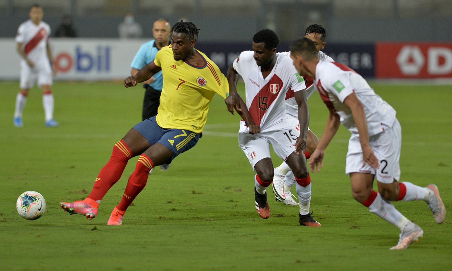 Con el resultado, Colombia llegó a siete puntos en cinco partidos que la ubican transitoriamente en la sexta posición, mientras que Perú quedó sumida en el último lugar de la tabla con un punto.