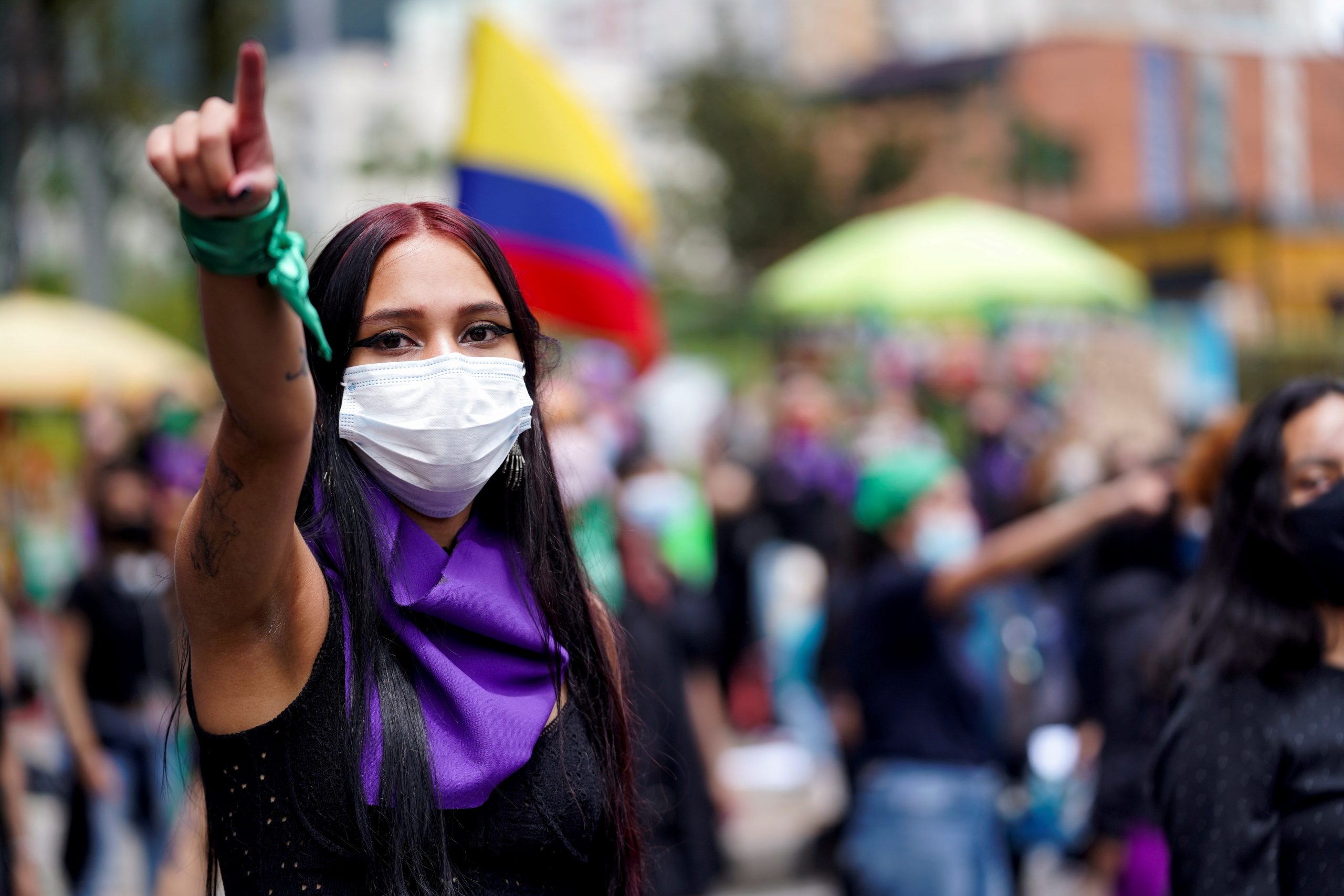 Una mujer gesticula durante una protesta contra las agresiones sexuales de la policía y el exceso de fuerza pública contra las protestas pacíficas, en Bogotá. REUTERS/Nathalia Angarita