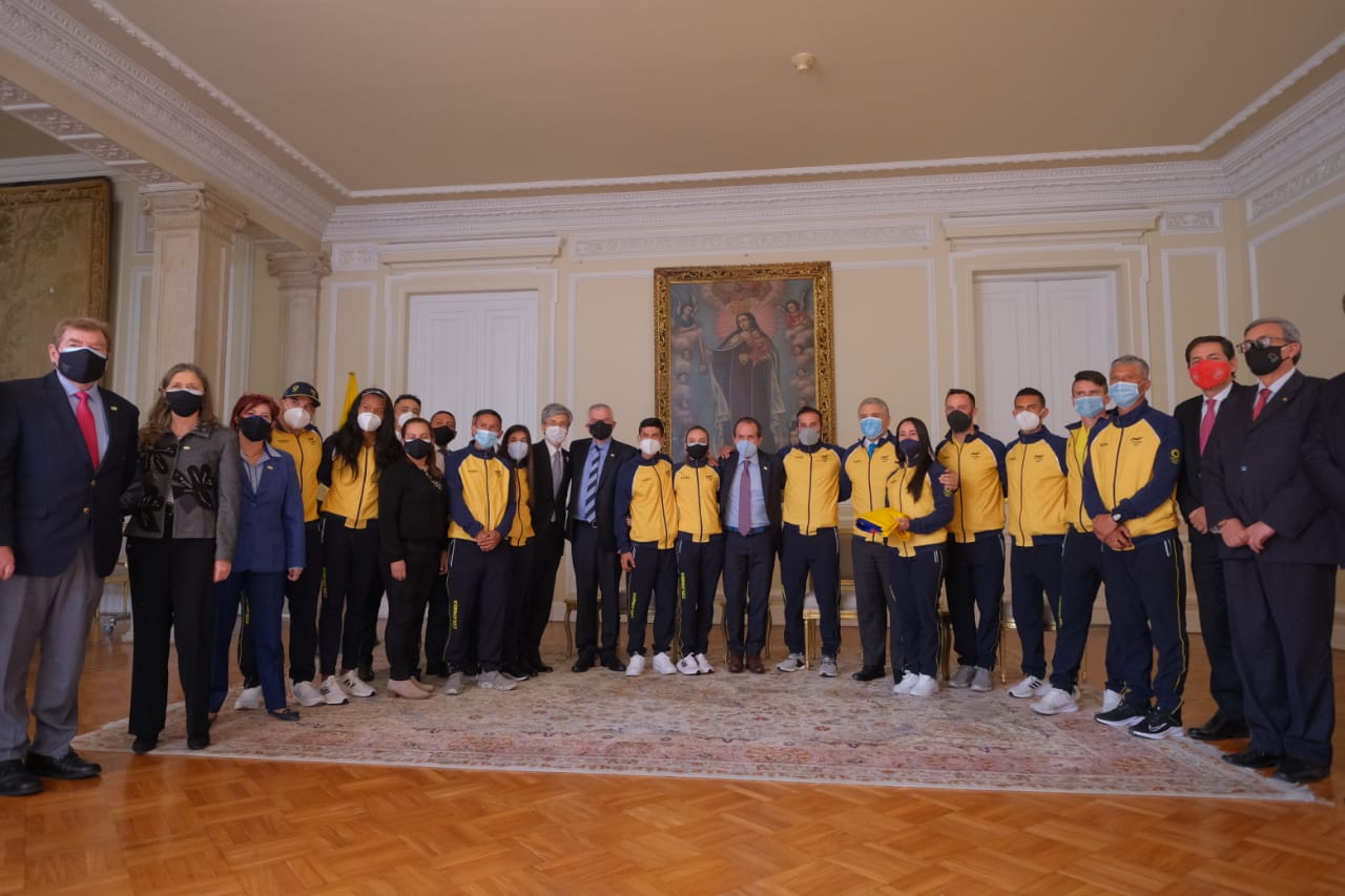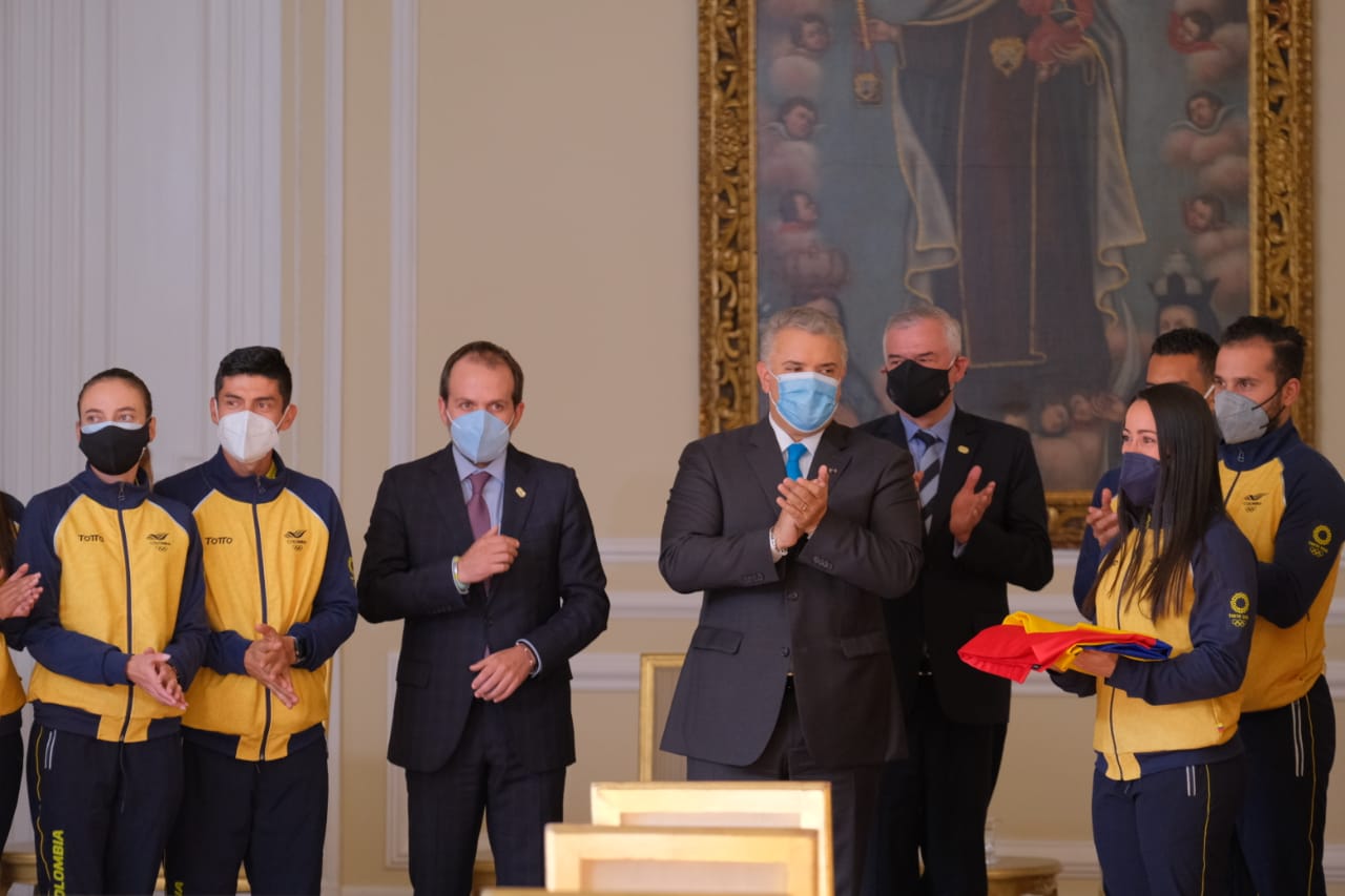 «Nos sentimos muy orgullosos de su esfuerzo y ustedes, queridos deportistas, son la mejor representación de este país. Dios los acompañe en este gran sueño de los Olímpicos», destacó el presidente, Iván Duque, quien este martes le entregó el pabellón a la delegación que, hasta el momento, confirma 56 atletas clasificados.