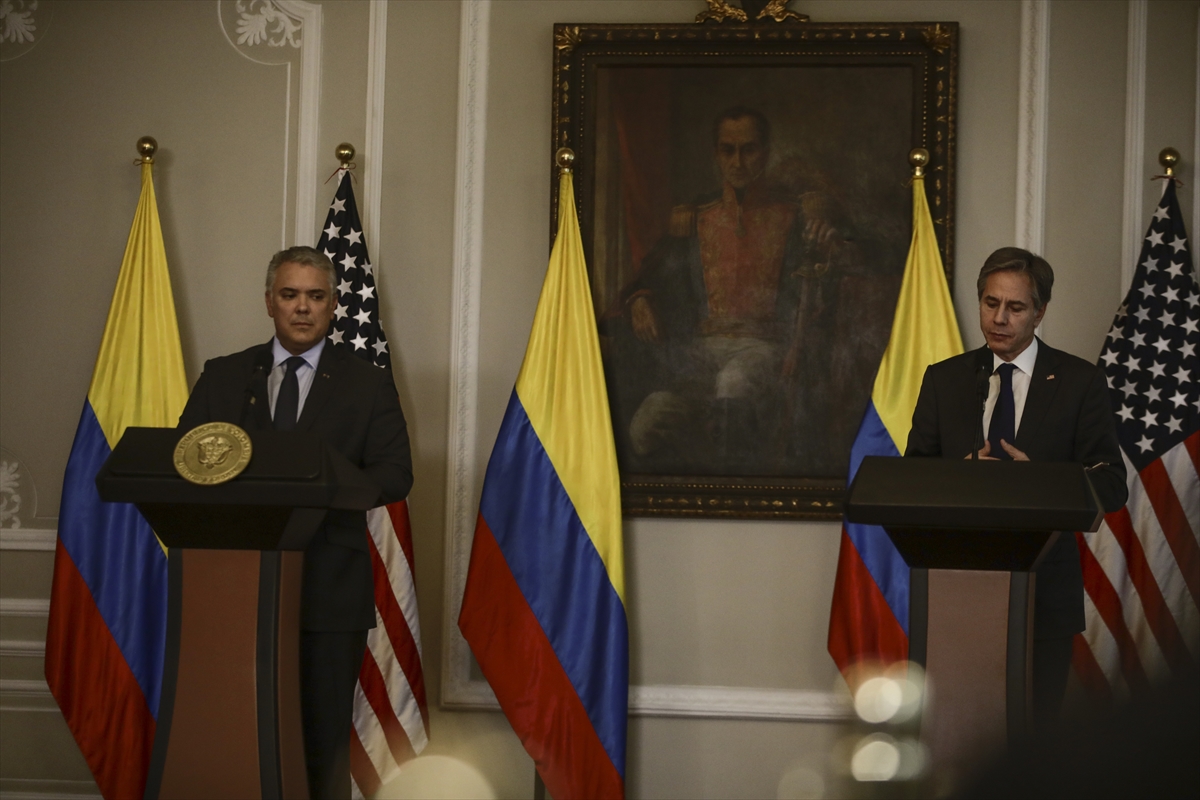 BOGOTA, 20 de octubre,2021_ AGENCIA ANADOLU_ En declaración conjunta entre el presidente, Iván Duque, y el secretario de Estados Unidos, Antony Blinken, desde la Casa de Nariño, el presidente Colombiano agradeció la visita del funcionario la cual busca reafirmar lazos de amistad.