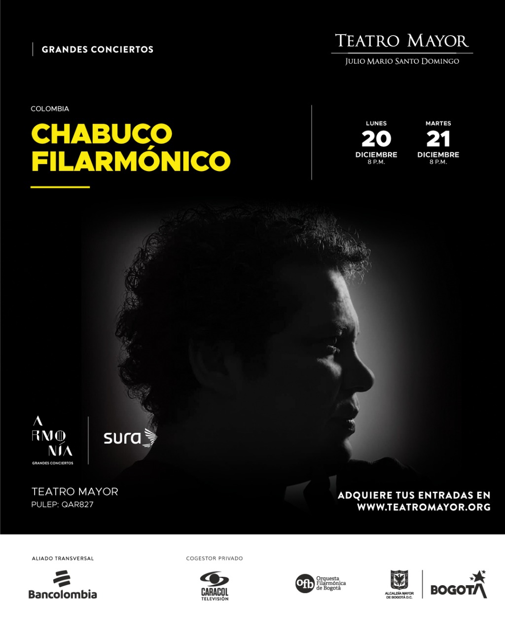 En esta ocasión la Orquesta Filarmónica de Bogotá, el reconocido cantante José Darío Martínez Acosta «Chabuco», y el prestigioso cantautor flamenco Antonio Carmona, ofrecerán dos presentaciones en el Teatro Mayor Julio Mario Santo Domingo los días 20 y 21 de diciembre a las 8 de la noche.