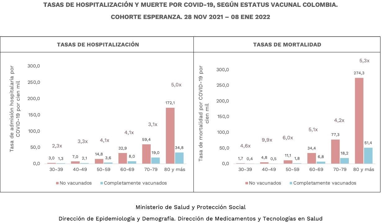 que varió entre 3 a 6 veces, durante el mes de diciembre. Esos riesgos pueden variar de acuerdo con el momento de pico (situación epidemiológica) y el tiempo que haya pasado desde que las personas son vacunadas, dado los cambios de la protección de las vacunas en el tiempo, especialmente cuando no han recibido su refuerzo, por esto en periodos más largos el riesgo relativo estimado puede ser diferente”.