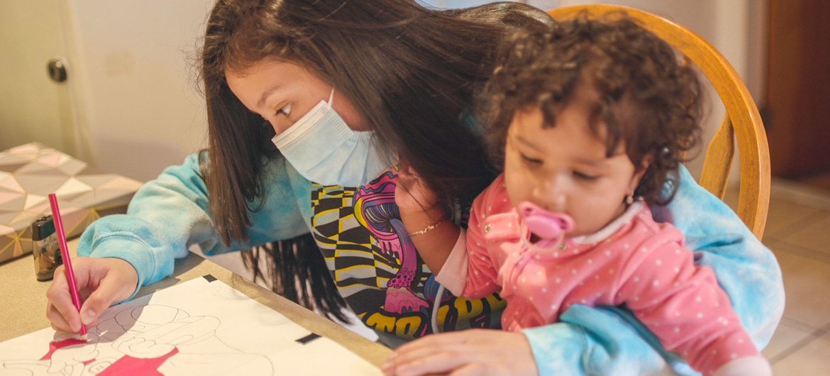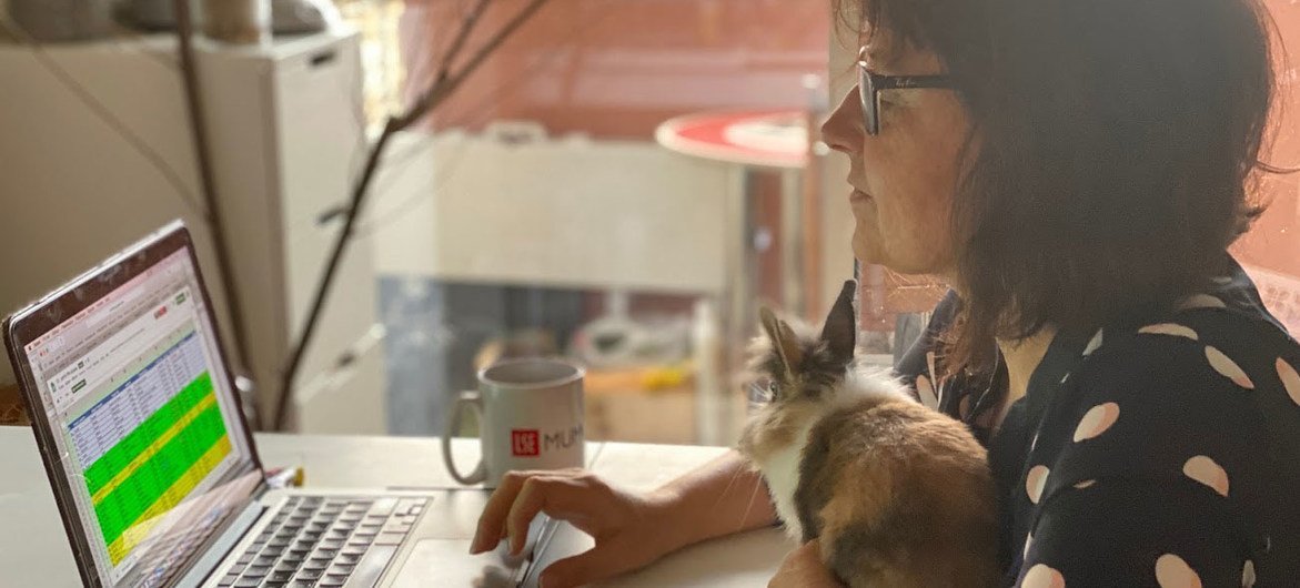 Una maestra se conecta con sus estudiantes en la modalidad de teletrabajo durante la pandemia de COVID-19.OIT/MArcel Crozet