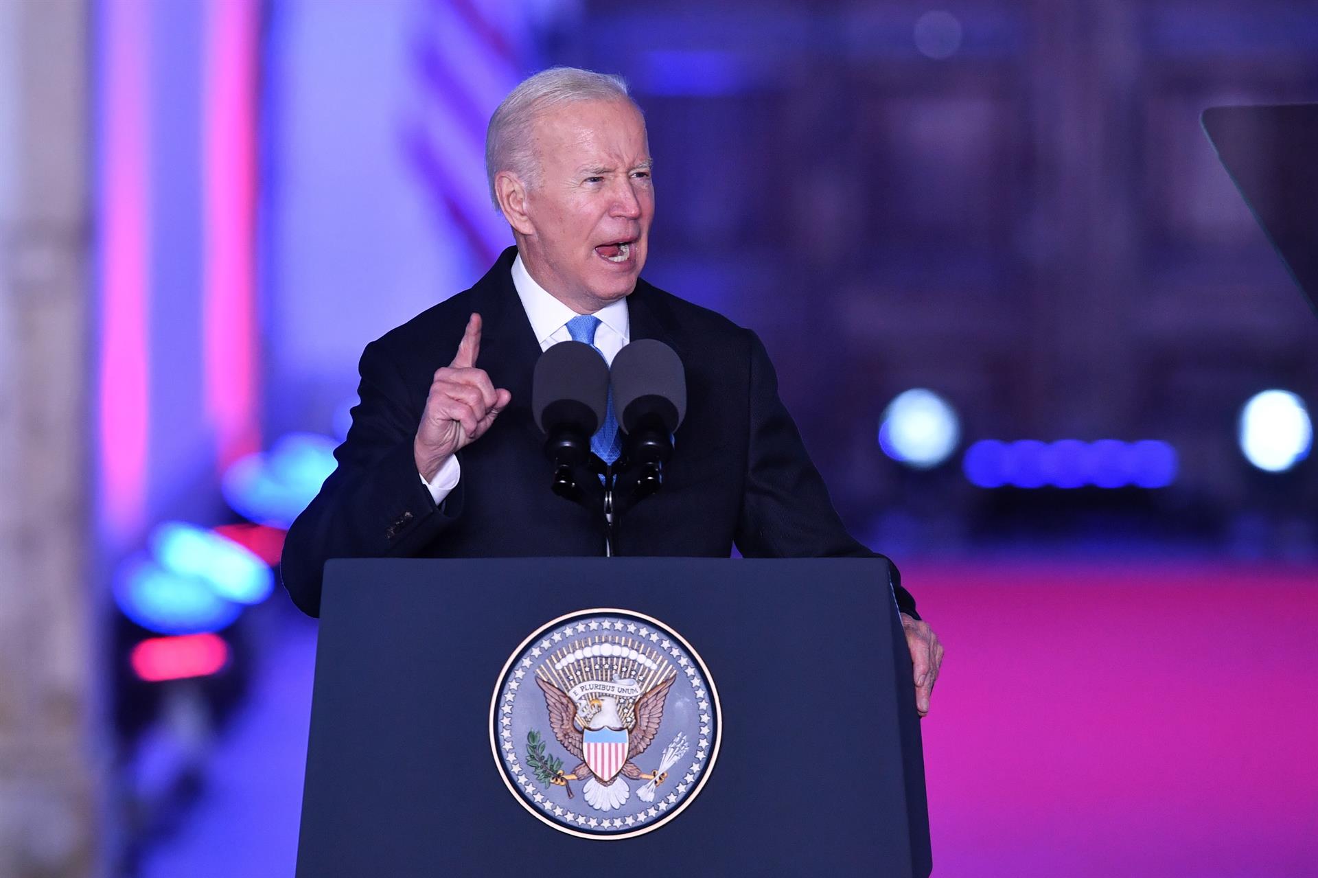 El presidente de Estados Unidos, Joe Biden, pronuncia un discurso en el Castillo Real de Varsovia, Polonia, el 26 de marzo de 2022.El presidente estadounidense voló el 23 de marzo a Bruselas, donde el 24 de marzo participó en una cumbre extraordinaria de la OTAN, la cumbre de líderes del G7 y la cumbre del Consejo Europeo. (Polonia, Estados Unidos, Bruselas, Varsovia) EFE/EPA/RADEK PIETRUSZKA FUERA POLONIA