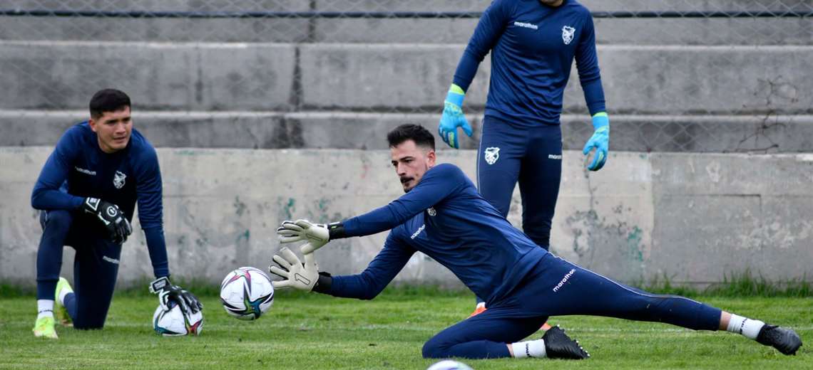Guillermo Viscarra arquero de Bolivia ,en entrenamiento antes de viajar a Colombia. Foto FBF