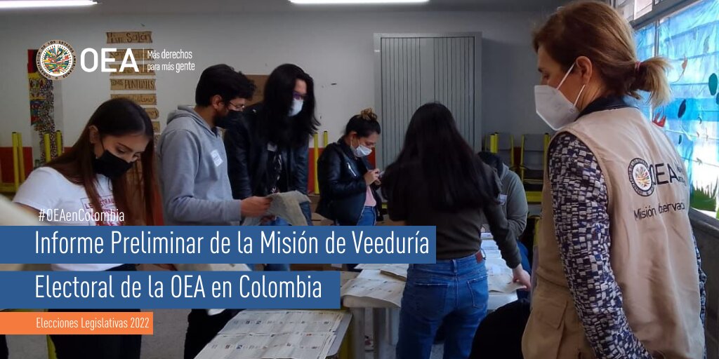 Según la MVE/OEA, solucionar y atender los “reportes de errores numéricos que existen en las votaciones del Senado y la Cámara” serán clave para “dar confianza y certeza al proceso frente a las elecciones presidenciales del 29 de mayo”.