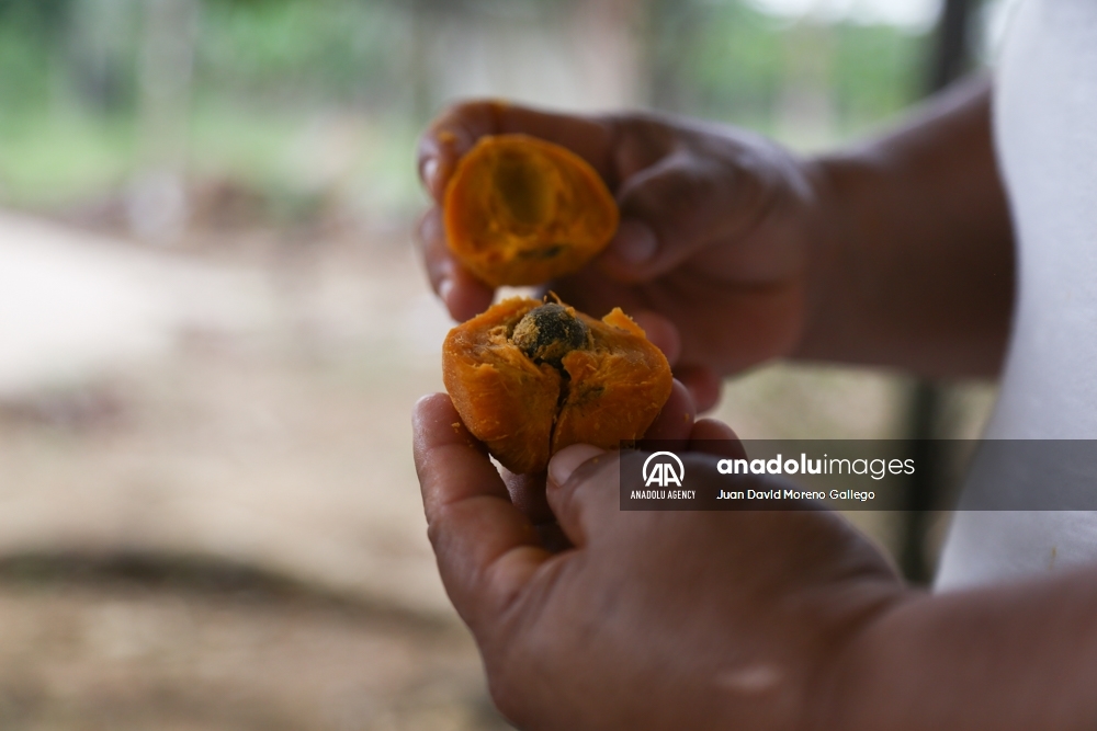 Villagarzón, Putumayo, 17 abril de 2022_ Agencia Anadolu _ Chontaduro: fruta exótica y misteriosa. Para aquellos que no la han probado es difícil llegar a comprenderla o incluso a imaginarla.