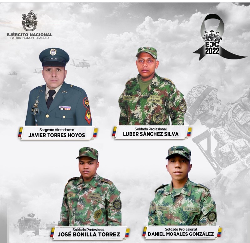 Los militares muertos en el ataque, un sargento viceprimero y tres soldados profesionales, pertenecían a Tropas de la Fuerza de Despliegue Rápido No.1 que «fueron atacados de manera indiscriminada con artefactos explosivos y ráfagas de fusil».
