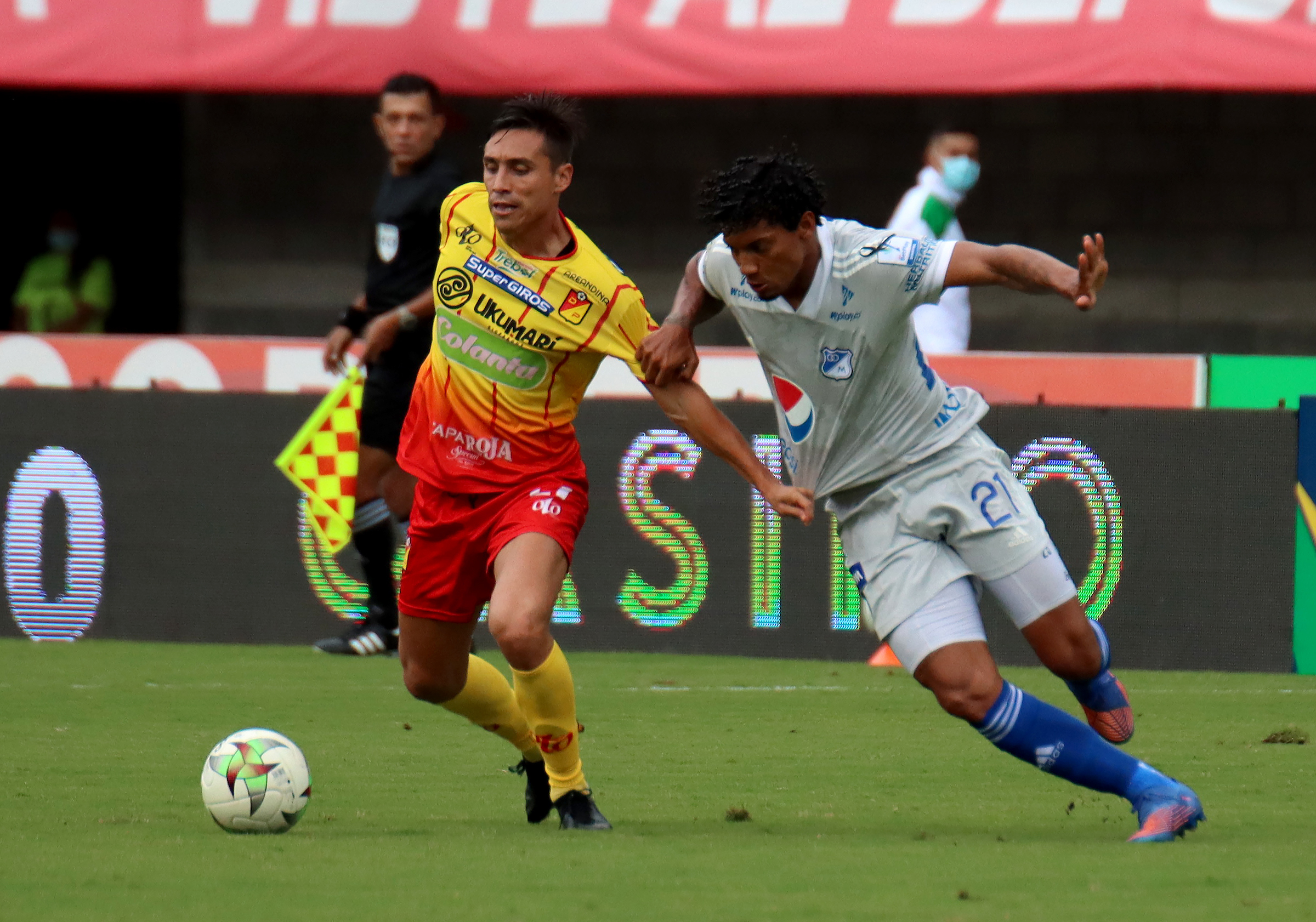 BOGOTA, 17 abril de 2022_RAM_ Millonarios perdió por la mínima diferencia 1-0 ante Deportivo Pereira, como visitante, en el estadio Hernán Ramírez Villegas, en juego correspondiente a la jornada 16 del Torneo Apertura de la Liga colombiana.