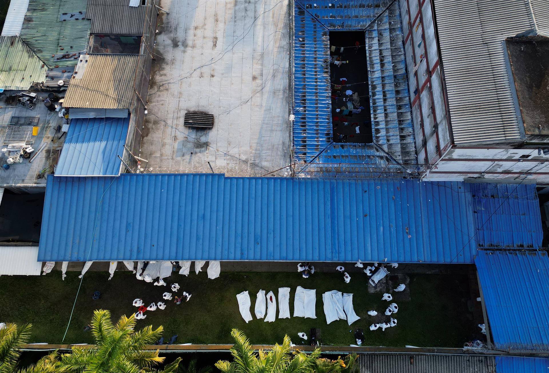 Fotografía aérea de la cárcel de Tuluá tras un incendio, hoy, en Tuluá, departamento de Valle del Cauca, donde esta madrugada murieron 51 personas, se enfrentaron con el Escuadrón Móvil Antidisturbios de la Policía (Esmad) cuando intentaron ingresar al presidio en busca de información de sus seres queridos. EFE/ STR