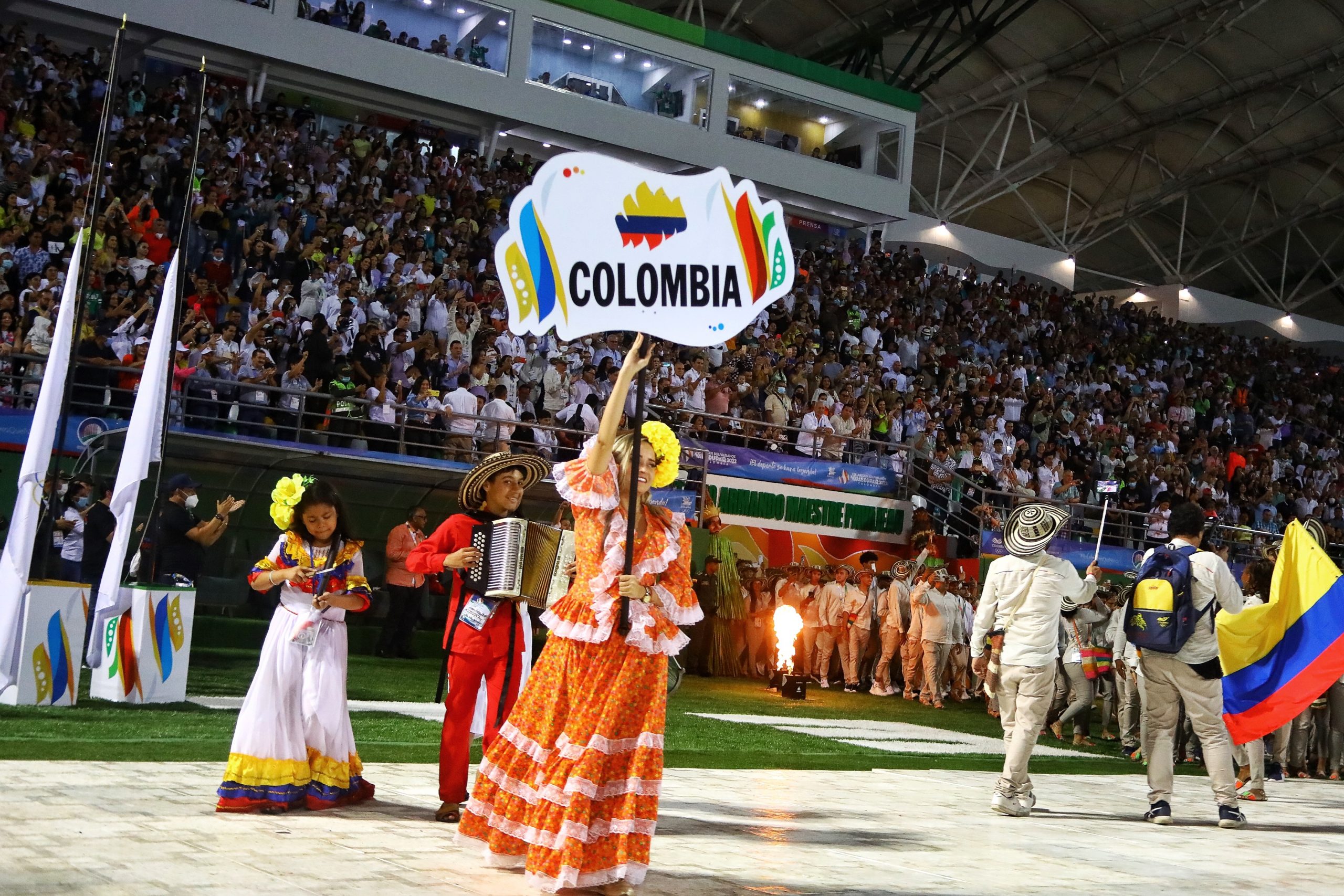 Delegación de Colombia en los Juegos Bolivarianos 2022Valledupar, 24 junio de 2022_RAM_ En el estadio Arman Maestre, en la ciudad de caribeña colombiana de Valledupar, se llevó a cabo la ceremonia de inauguración de los XIX Juegos Bolivarianos Valledupar 2022, certamen multideportivo que da inicio al ciclo olímpico rumbo a París 2024.