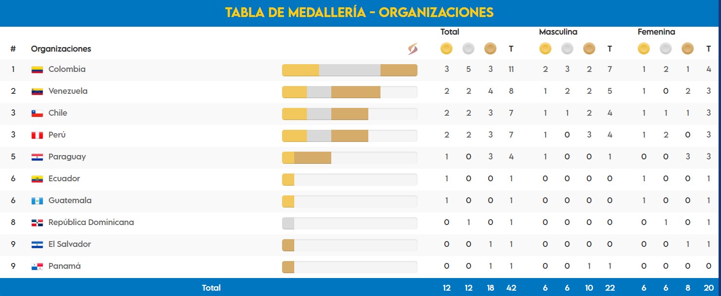 Los equipos nacionales de Bolivia, Chile, Ecuador, El Salvador, Guatemala, Panamá, Paraguay, Perú, República Dominicana, Venezuela y Colombia, la anfitriona, animaron el espectáculo que colmó las tribunas del Armando Maestre.