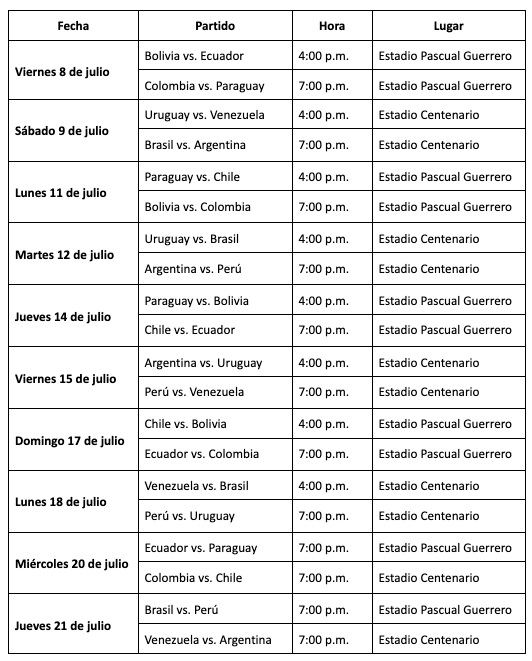 Los diferentes partidos se podrán ver del 8 al 30 de julio por Capital Sistema de Comunicación Pública, Canal Tro, Teleislas, Telecafé, Teleantioquia, Telepacífico, Telecaribe y Canal Trece.