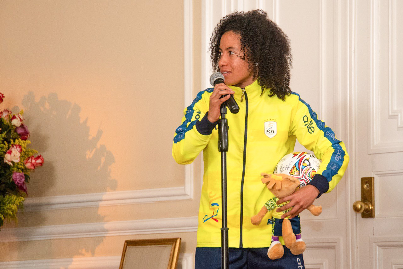 «¡Este es el Gobierno del pueblo! Todas empezamos en la cuadra en el barrio, es el deporte más popular de Colombia porque se hace un arco con piedras y un balón con trapos. Me siento muy orgullosa de ser parte de esta selección. Gracias por el apoyo del Gobierno. Quisiéramos dejar un legado a las niñas que vienen atrás y por eso anhelamos una liga más extensa», dijo la goleadora y capitana, Shandyra Wright.