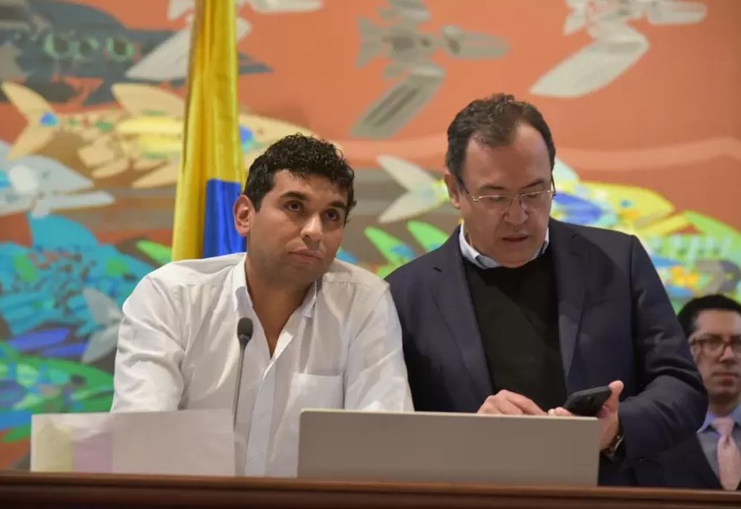 Presidente de la Cámara de Representantes, David Racero y el ministro del Interior Alfonso Prada durante el debate de la Reforma Política