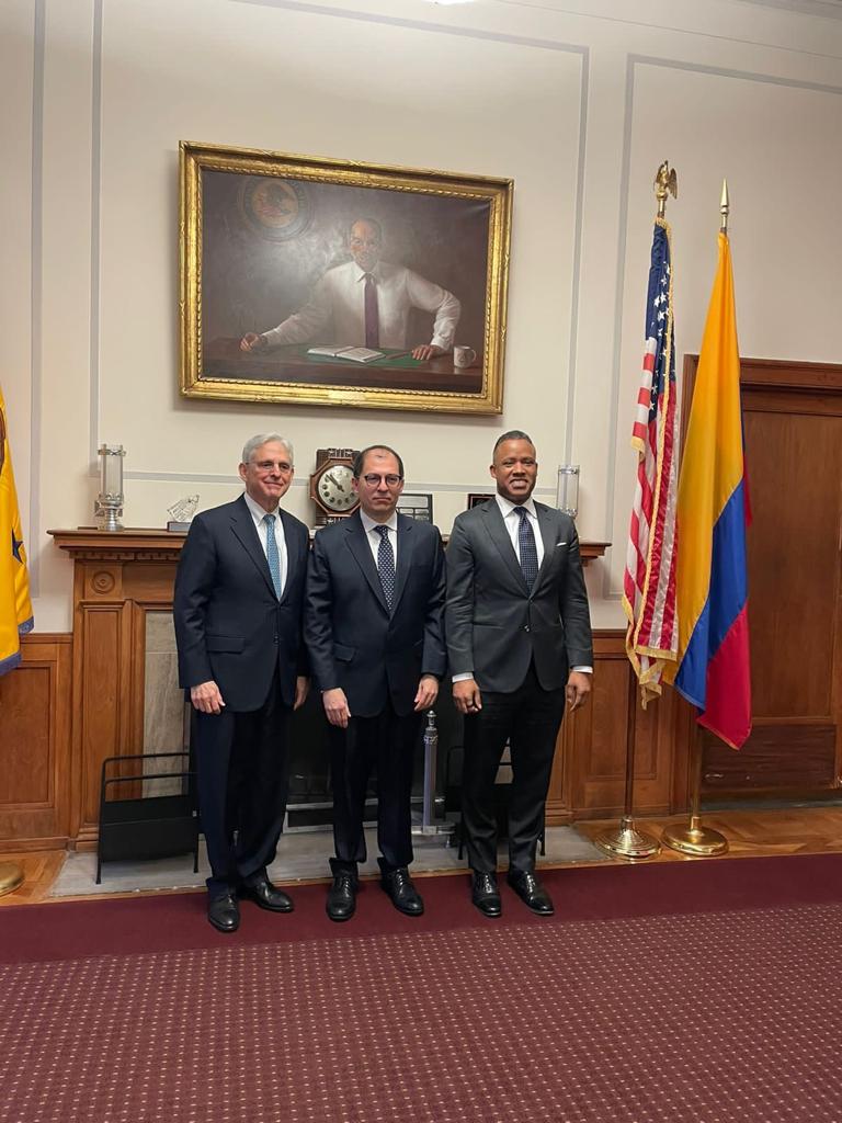 El Fiscal General de los Estados Unidos, Merrick B. Garland, asistió a la reunión para agradecer personalmente al Fiscal General Barbosa por la destacada cooperación entre los Estados Unidos y Colombia.