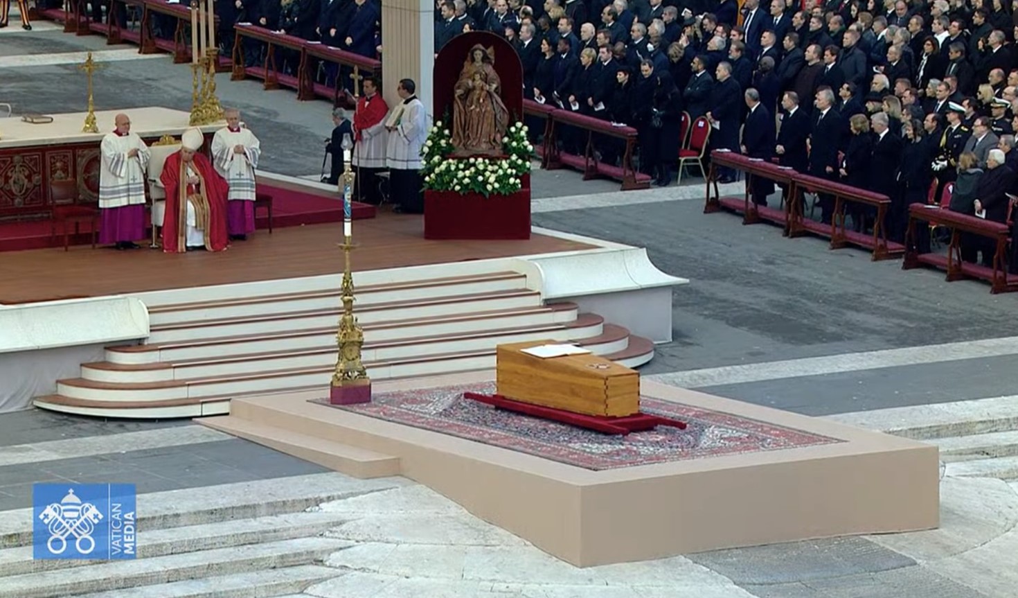 En la mañana de este miércoles 5 de enero, el Papa Francisco celebró ante 50 mil fieles de todo el mundo la Misa por el funeral del Papa Emérito Benedicto XVI en la Plaza de San Pedro del Vaticano, primera vez en la historia de la Iglesia que un Pontífice celebra el funeral de un Papa Emérito.