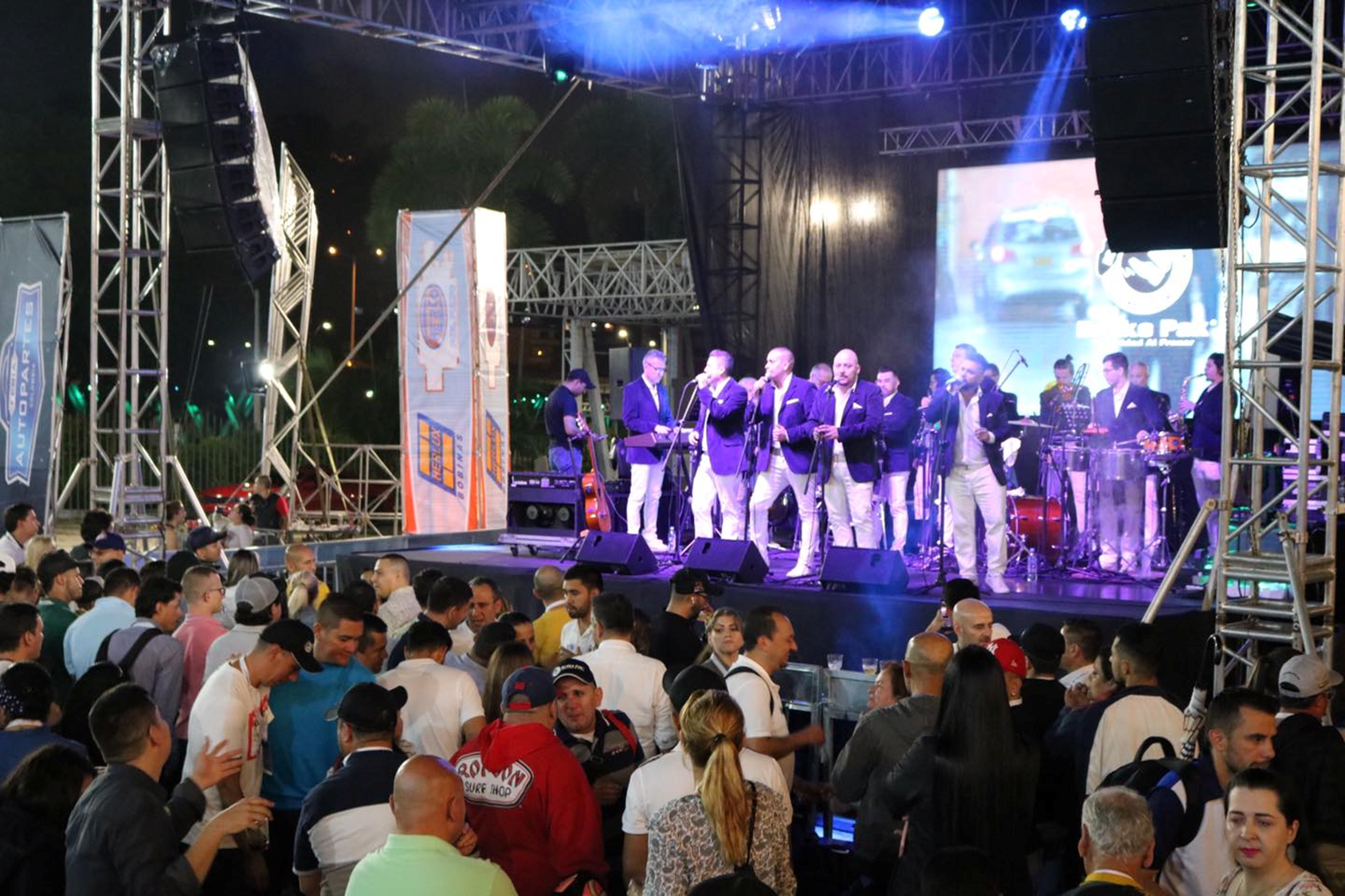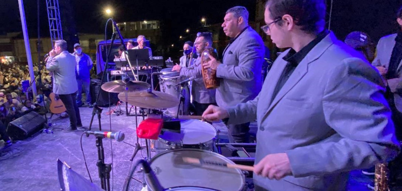 La orquesta conformada por 14 artistas en tarima –con 4 cantantes—don Humberto Muriel como director general y Carlos Mario Ortiz como director musical.