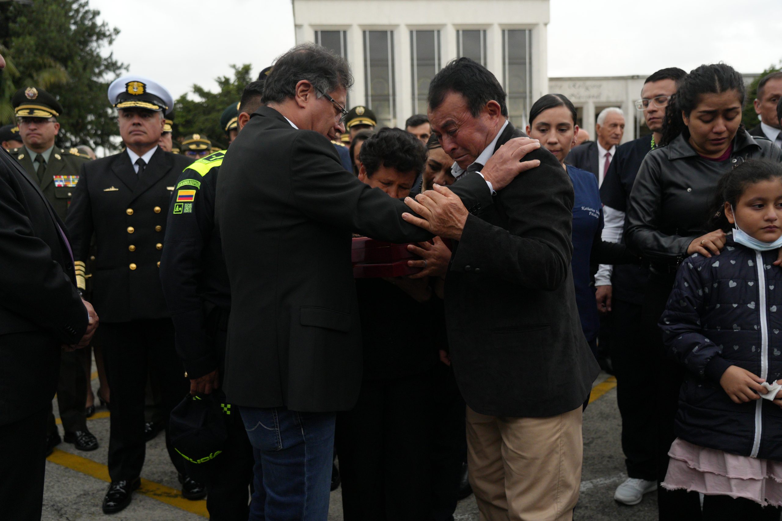 Presidente Petro con Familiares en las Honras fúnebres del Subteniente Arley Monroy Prieto.Foto Presidencia