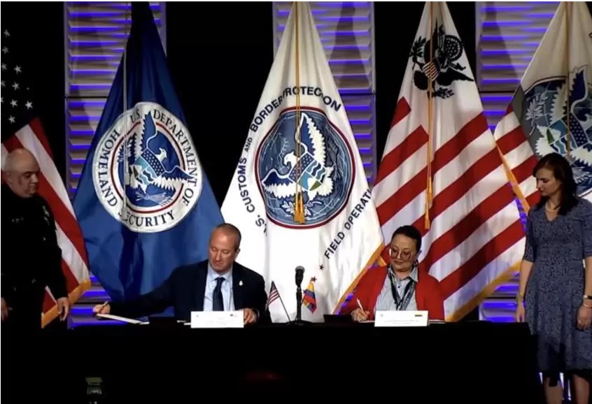 Ingrid Diaz Rincón, Directora de Gestión de Aduanas de la DIAN y Troy A. Miller, Comisionado Interino de Aduanas y Protección Fronteriza de EE.UU. Foto Cortesía DIAN