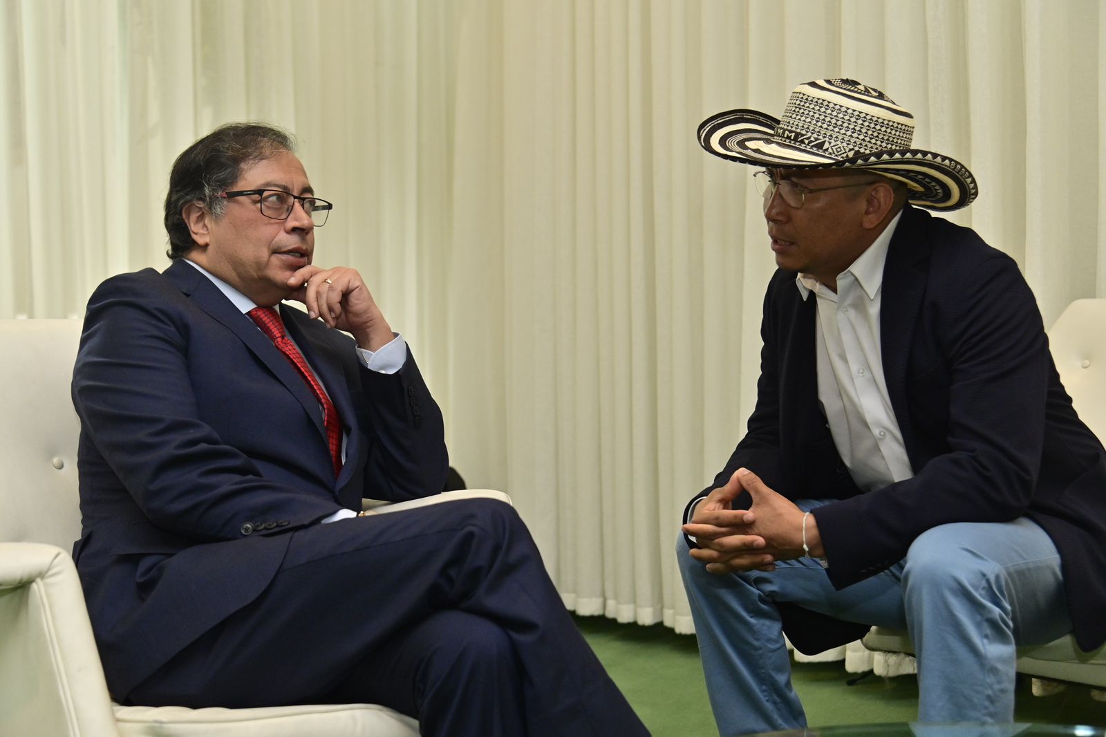 Encuentro del Gustavo Petro con el Presidente del Foro Permanente indigena, Darío Mejía Montalvo .Foto Presidencia