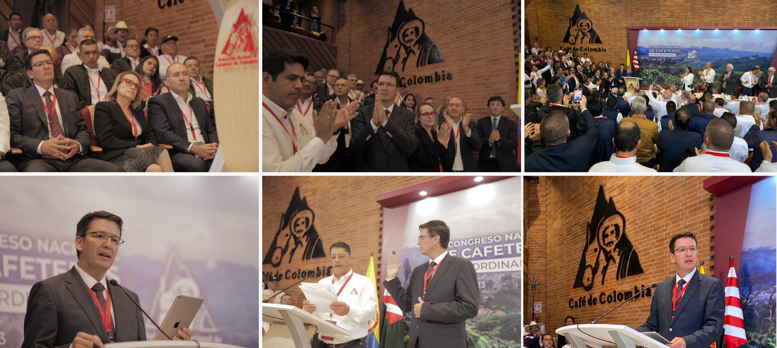 “Una vez más el compromiso con los caficultores de Colombia y, por supuesto, con la institucionalidad cafetera, se plasma en este recinto que nos convoca para deliberar y tomar la mejor decisión en beneficio del sector”, dijo Albeiro Hernán Duque, presidente del 91 Congreso Nacional de Cafeteros Extraordinario, y quien tomó juramento al nuevo gerente.