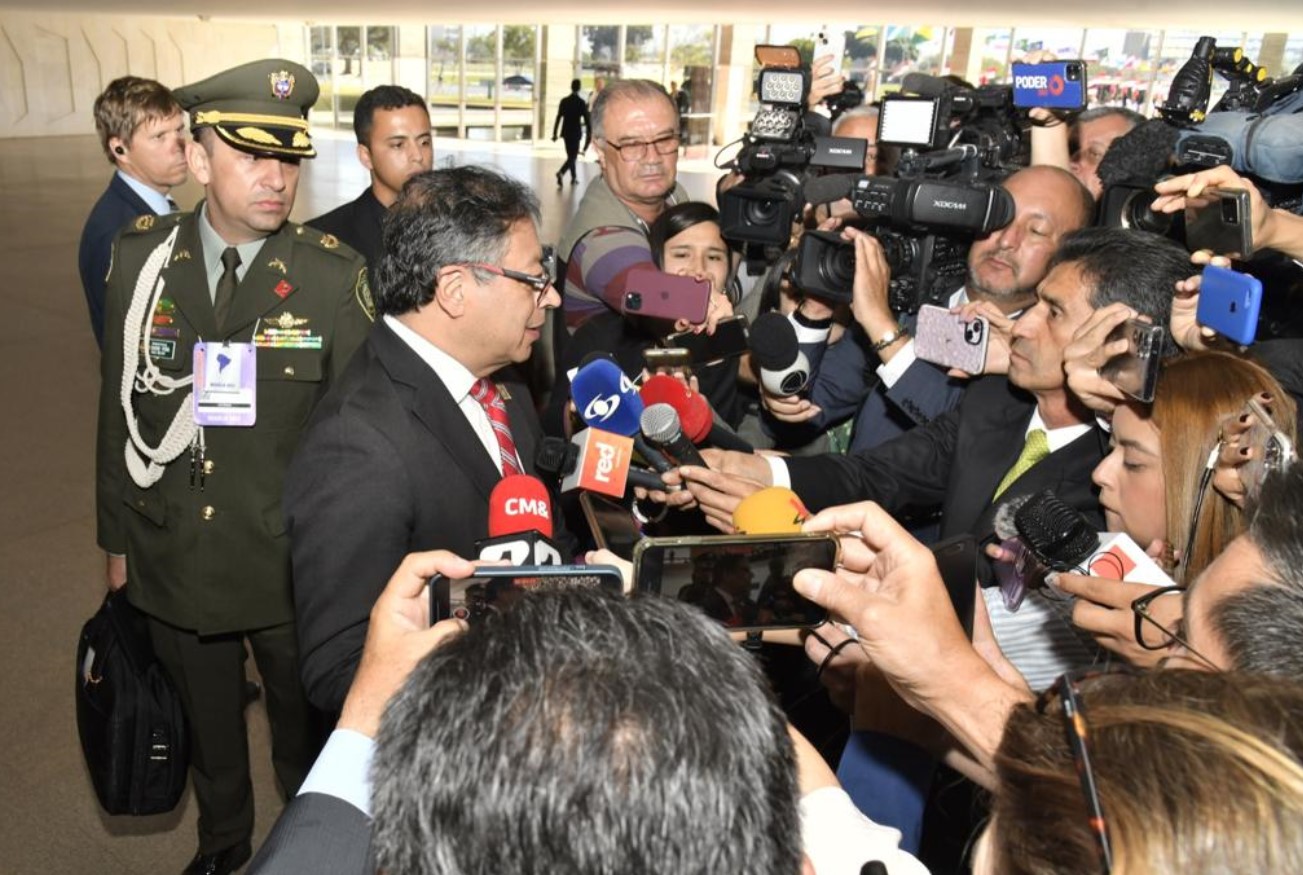 El presidente Gustavo Petro da declaraciones a la Prensa a su llegada a la Cumbre de Presidentes de América del Sur. Foto: Leo Queen- Presidencia, Presidencia de la República