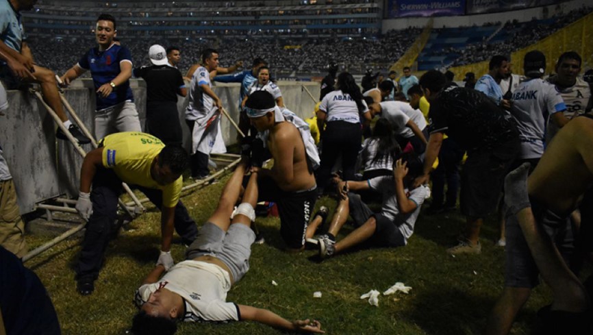 Estampida en el capitalino Estadio Cuscatlán que dejó un saldo preliminar de 12 muertos y decenas de heridos.