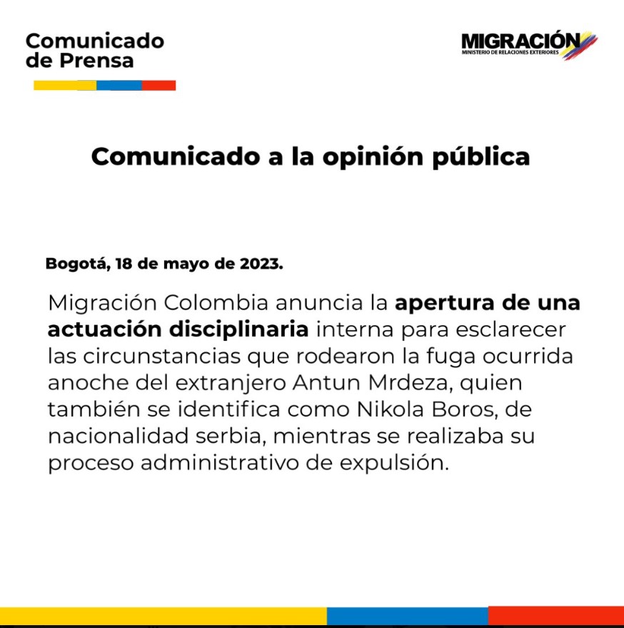 Migración Colombia abrirá investigación por fuga de narcotraficante serbio que iba a ser extraditado