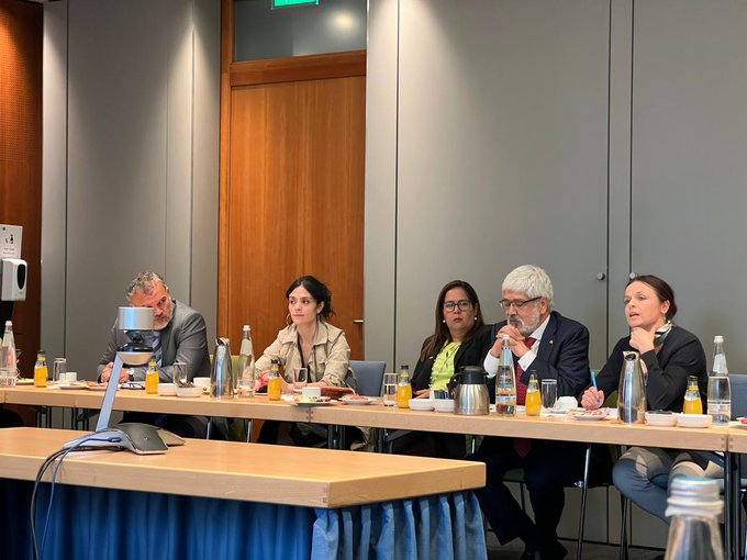En desarrollo de su agenda, el alto funcionario se reunió con los Ministros de Cooperación Económica y Desarrollo de Alemania, Jochen Flasbarth, y de Asuntos Económicos de Suiza, Helene Budliger Artieda, a quienes les dio a conocer las apuestas productivas de la Política de Reindustrialización, que se enfocan en la transición energética; la agroindustria y seguridad alimentaria; la salud y la defensa y la vida, todo con énfasis en los territorios y en su tejido empresarial.