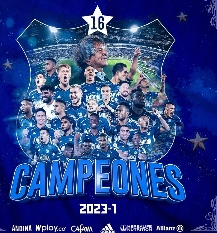 Bogotá, 24 junio, 2023_RAM_Millonarios se consagró campeón de la Liga Colombiana 2023-I tras superar desde los penales a Atlético Nacional tras el empate 1-1 con goles de Jefferson Duque y Andrés Llinás. En la definición desde la tanda, Álvaro Montero fue clave al atajar dos cobros, mientras que Larry Vásquez puso el tanto que sentenció la final.