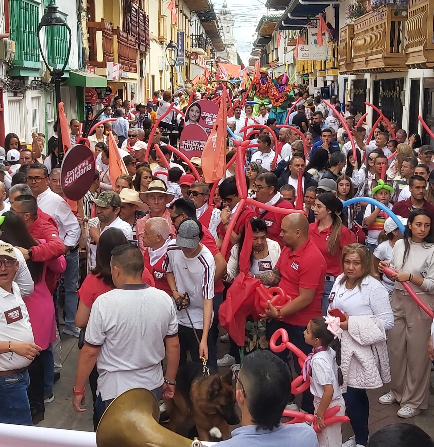 Las calles se engalanaron con la presencia de los pobladores quienes portaron banderas, bombas y se desplazaron por las céntricas vías de la localidad, animados por la chiriquesta , zanqueros , un jeep adornado con los productos del municipio y las pancartas alusivas al inicio de campaña.