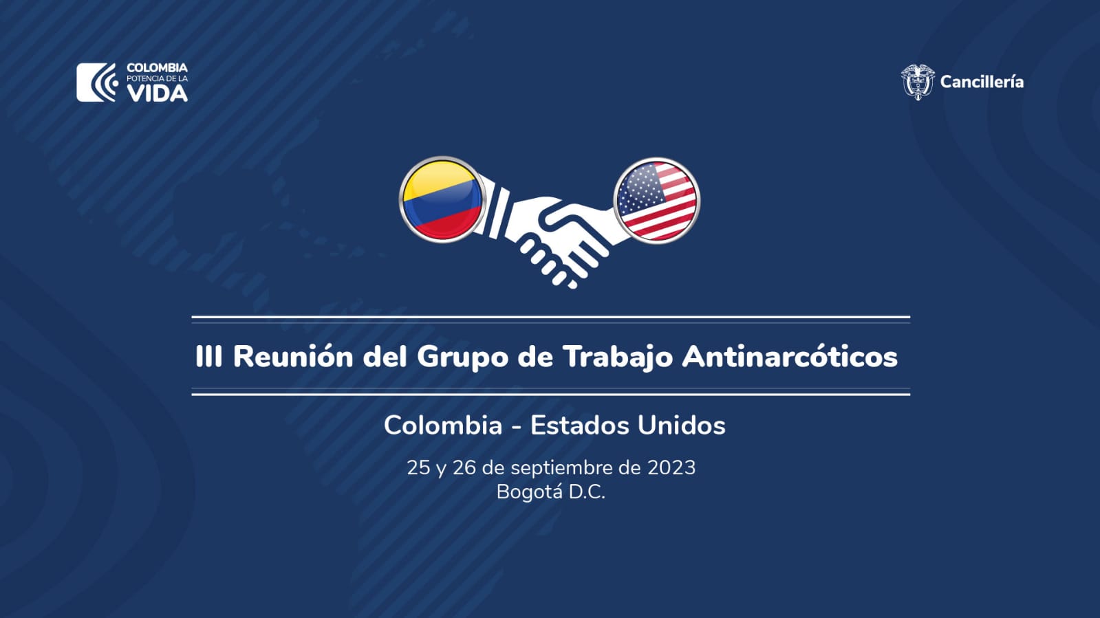 El encuentro se realizará con el objetivo de fortalecer la cooperación bilateral para desarrollar los lineamientos de la nueva Política Nacional de Drogas 2023-2033: Sembrando Vida, Desterramos el Narcotráfico. En su tercera versión, la reunión busca exponer la nueva Política Nacional de Drogas de Colombia, con Estados Unidos como socio estratégico, resaltando que se mantendrá la cooperación norteamericana y que se articularán los esfuerzos con las autoridades colombianas.