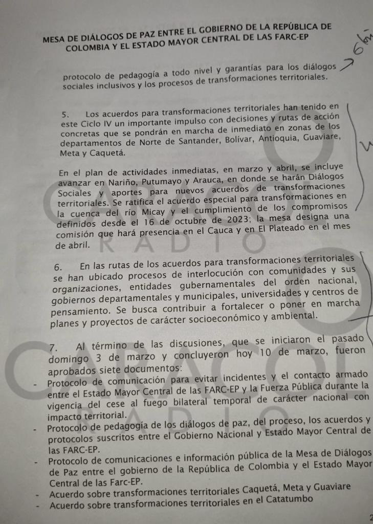 Caracol Radio conoció el documento y estos son los acuerdos: