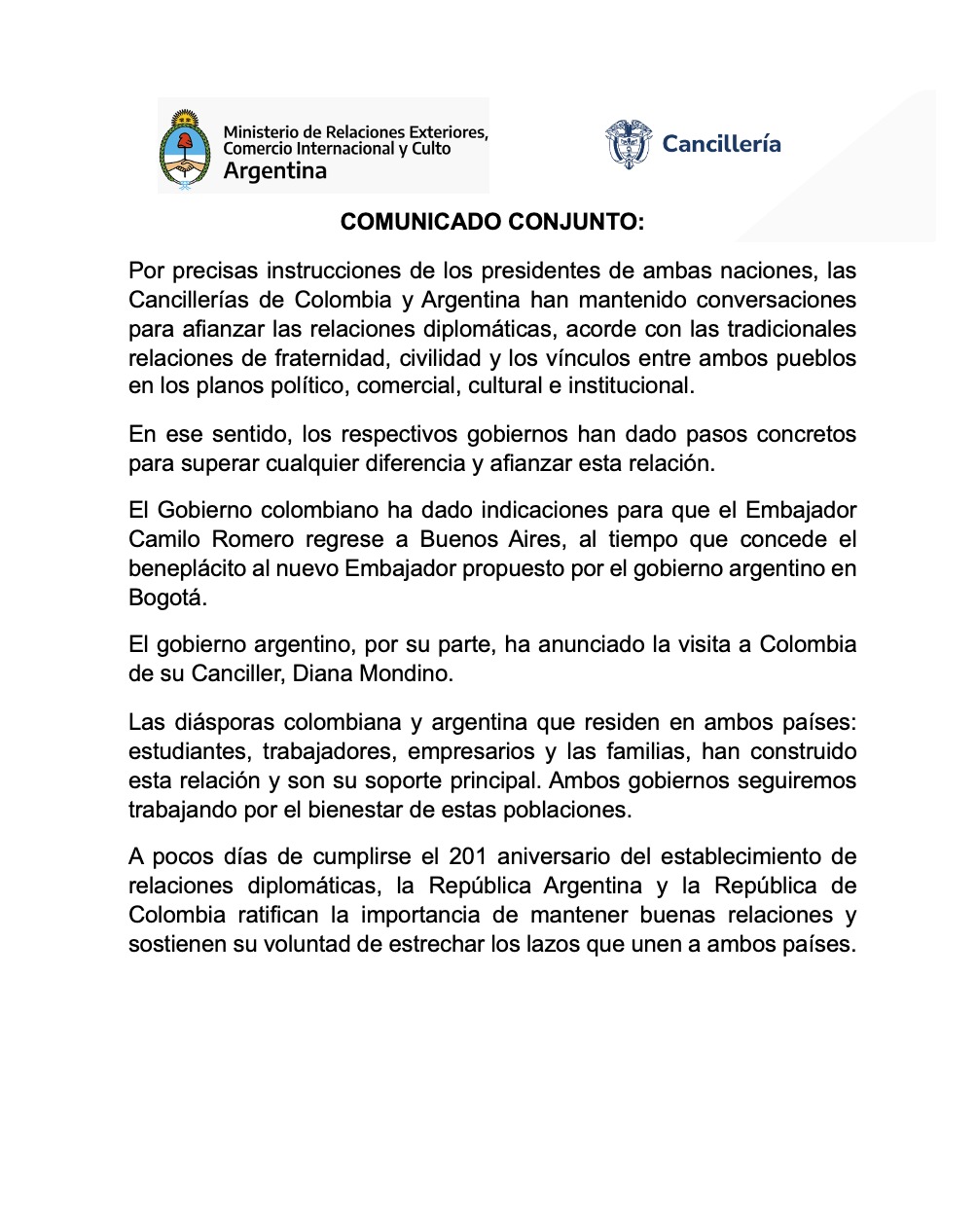 El canciller mencionó la relevancia del intercambio comercial y las inversiones entre Colombia y Argentina, enfatizando que las medidas tomadas no afectarán negativamente la relación económica bilateral. Explicó que se seguirá promoviendo la cooperación en áreas como la lucha contra el crimen organizado y otros desafíos compartidos. Aseguró: «Colombia ha acompañado los acuerdos de Barbados y sus desarrollos posteriores».