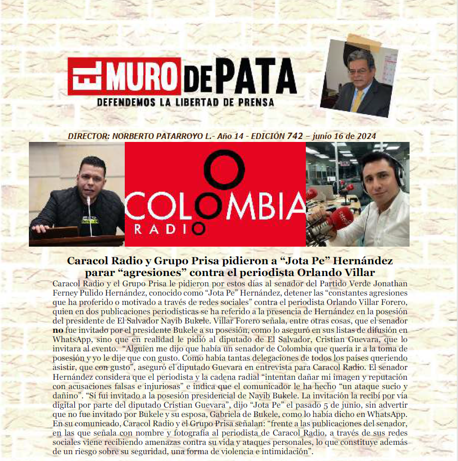 – Ataques de senador Jota Pe provocan amenazas en contra de periodista de Caracol Radio: FLIP
