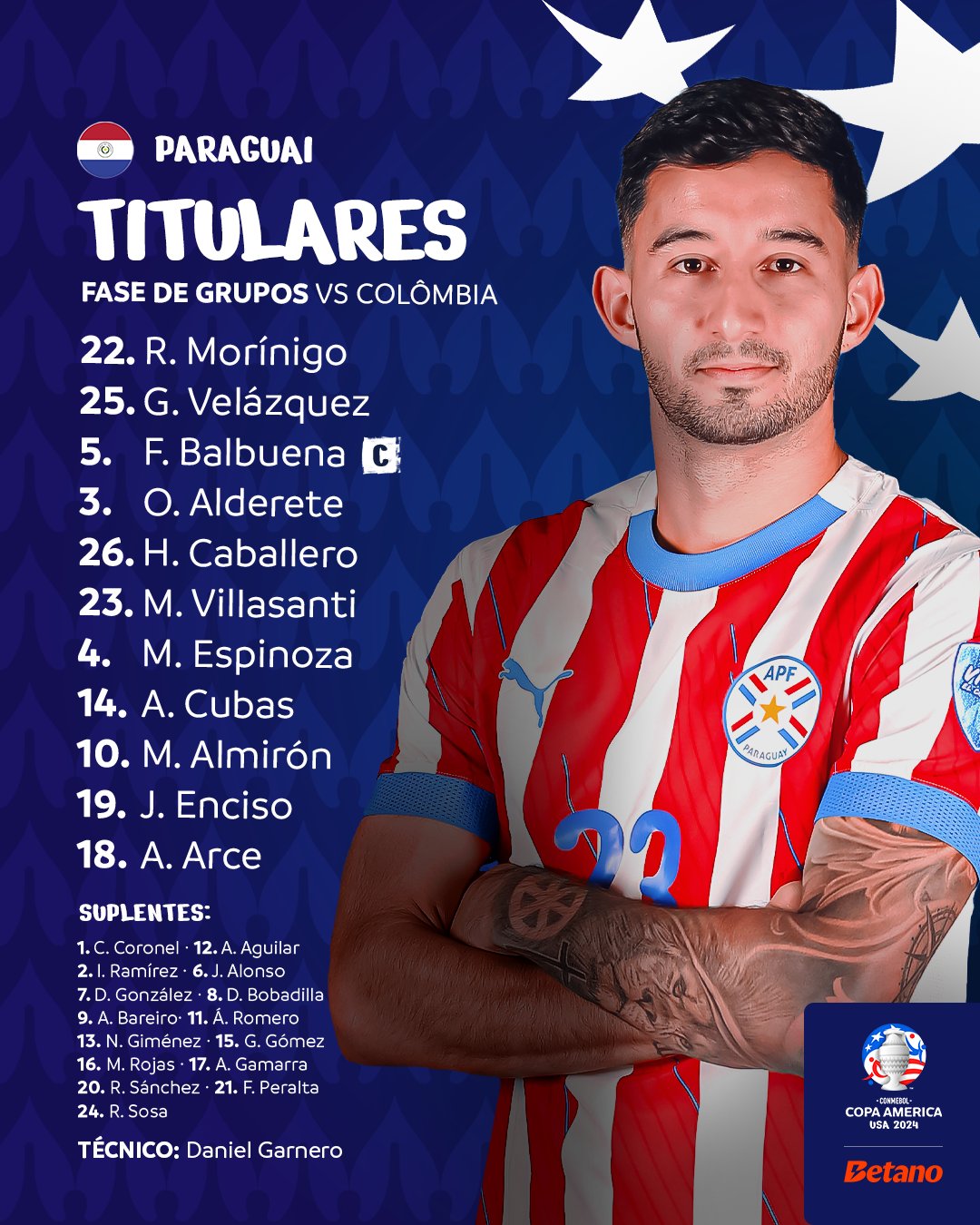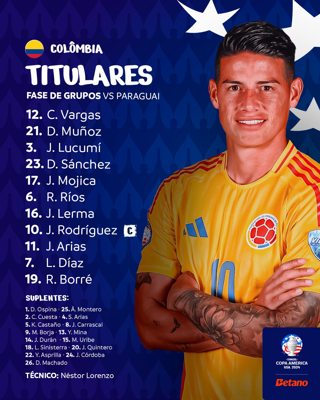 Alineación de Colombia contra Paraguay en la Cops Smérica 2024
