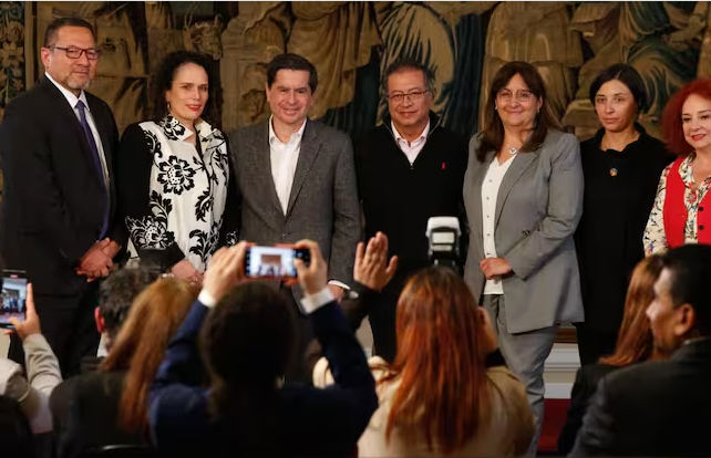 El presidente de la República, Gustavo Petro, junto con nuevos integrantes de su Gabinete Ministerial. Cortesía: @MinInterior