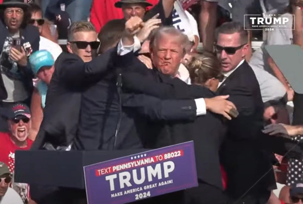 No está claro qué ocurrió, pero se sintieron ruidos o explosiones y las imágenes mostraron cómo cayó el exmandatario después de abrir su intervención en esa zona rural de Pensilvania, diciendo que él será nominado en la Convención Nacional Republicana que comienza el lunes en Milwaukee, Wisconsin.