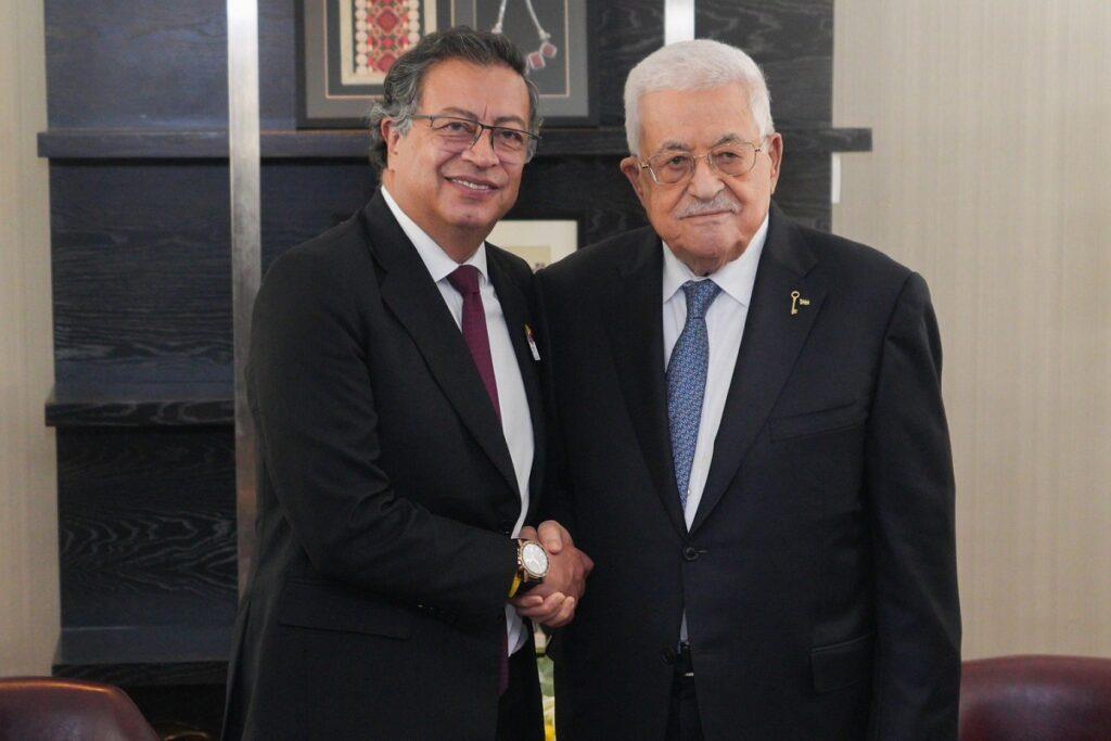 El mandatario de Colombia, Gustavo Petro, se reunió hoy aquí con su homólogo de Palestina, Mahmoud Abbas, como una muestra de apoyo a ese Estado asediado por Israel.