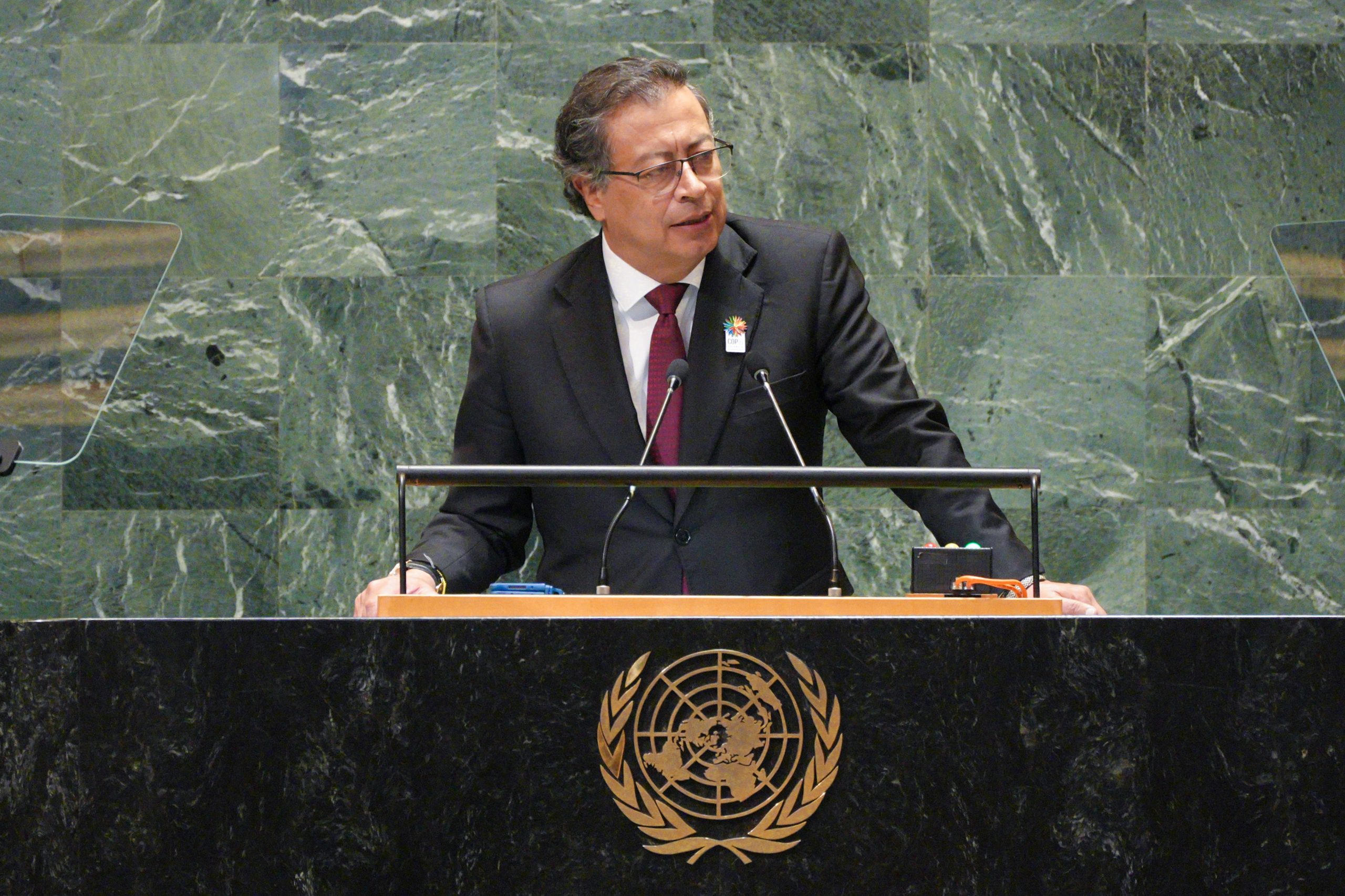 Naciones Unidas, 24 sep (Pensa Latina) El presidente de Colombia, Gustavo Petro, pronunció hoy aquí un enérgico discurso en el que pidió a los pueblos luchar para derrotar a la oligarquía mundial, cuya ambición conduce a la humanidad a su extinción.