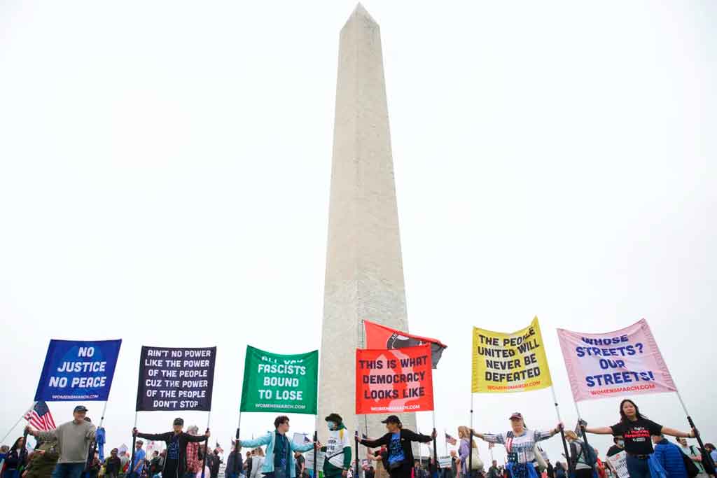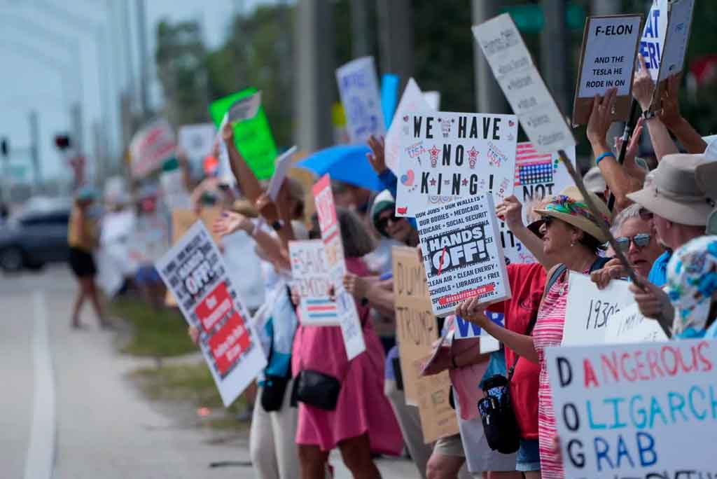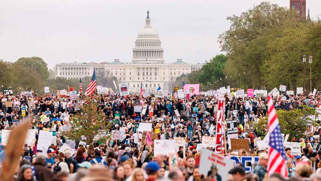 Más de mil 200 manifestaciones se sucedieron este sábado en ciudades y pueblos del país contra los planes de Trump para la Seguridad Social y Medicare, los recortes presupuestarios federales y despidos; las deportaciones, redadas y arrestos; sus políticas económicas y los esfuerzos por reducir las protecciones para las personas transgénero, entre otras razones.