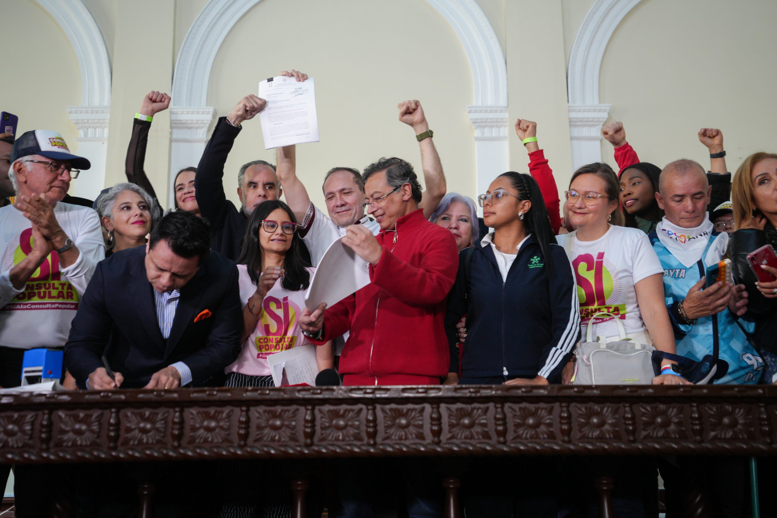 El presidente Gustavo Petro acudió en persona al ente legislativo para presentar el contenido de la boleta que contiene 12 preguntas a las que la ciudadanía, de ser autorizada la realización del ejercicio de participación ciudadana, debe contestar con un sí o un no.