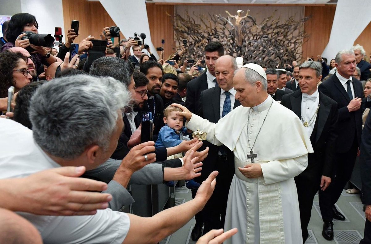 Al pasar por el pasillo central, el Papa León XIV bendijo al pequeño Lorenzo Ibáñez, hijo del veterano fotógrafo de EWTN News