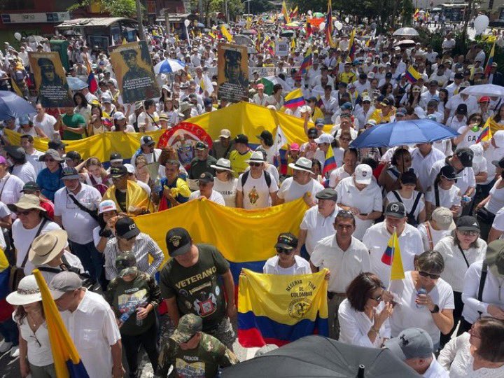 Se escucharon gritos de «¡Fuerza, Miguel!» y proclamas como «¡Una Colombia unida jamás será vencida!».