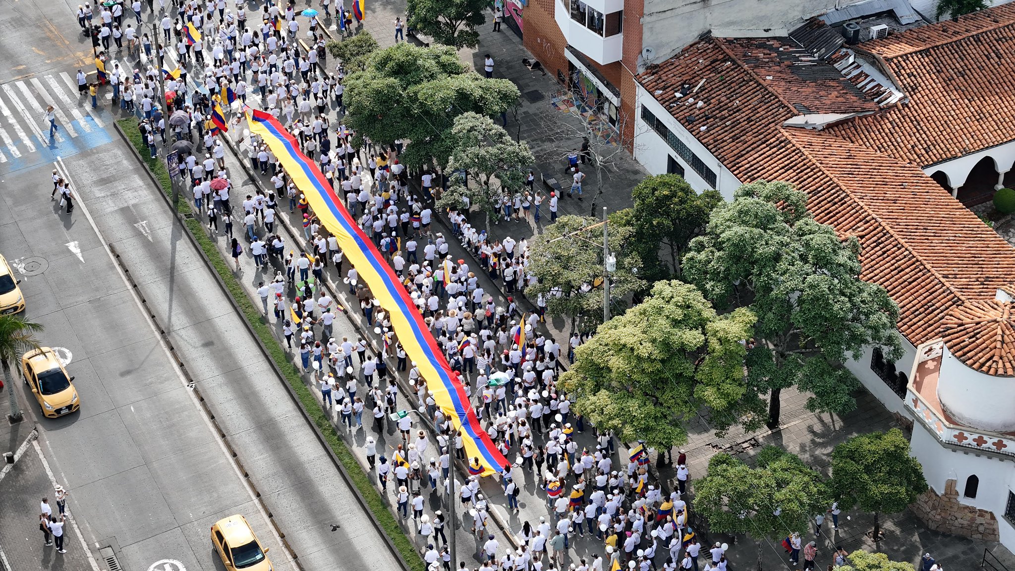 Los manifestantes portaban banderas de Colombia y camisetas blancas como símbolo de paz y unidad.