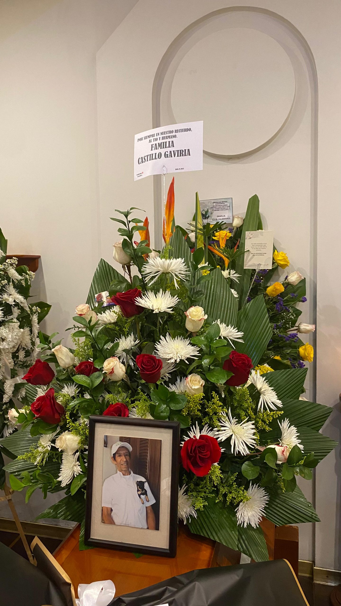 Bello ramo floral de su Hermano Gustavo Castillo, su esposa Nohelia y sus hijos Liliana María, Carlos , Francia, Oscar y César Castillo Gaviria